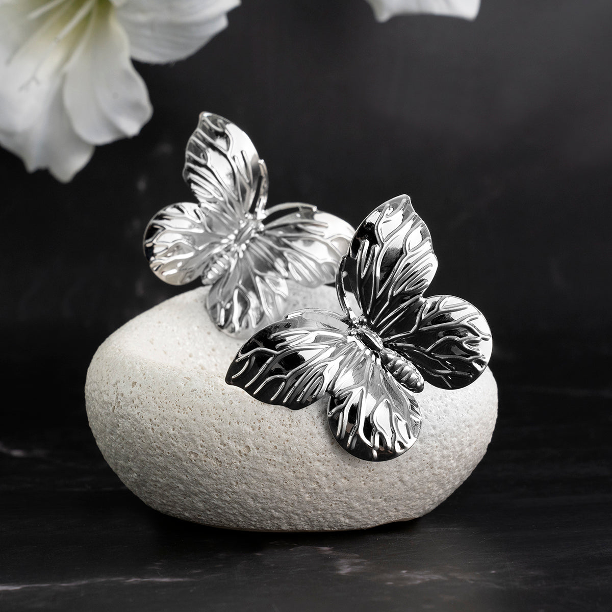 Estos atrevidos pendientes de mariposa aportan un toque único de elegancia a tu estilo y marcan tendencia dondequiera que vayas.