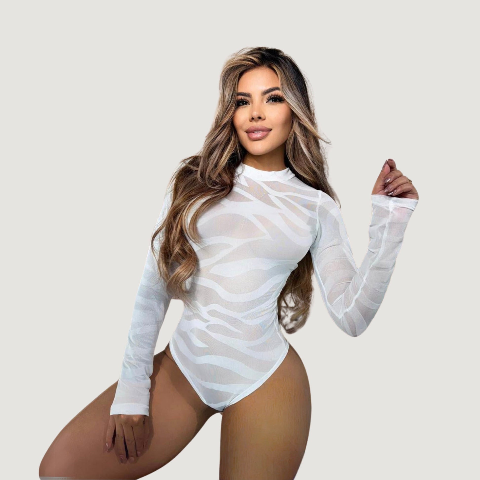¡Un conjunto sexy perfecto para marcar tendencia! Descubre nuestro body con textura de tigre feroz.