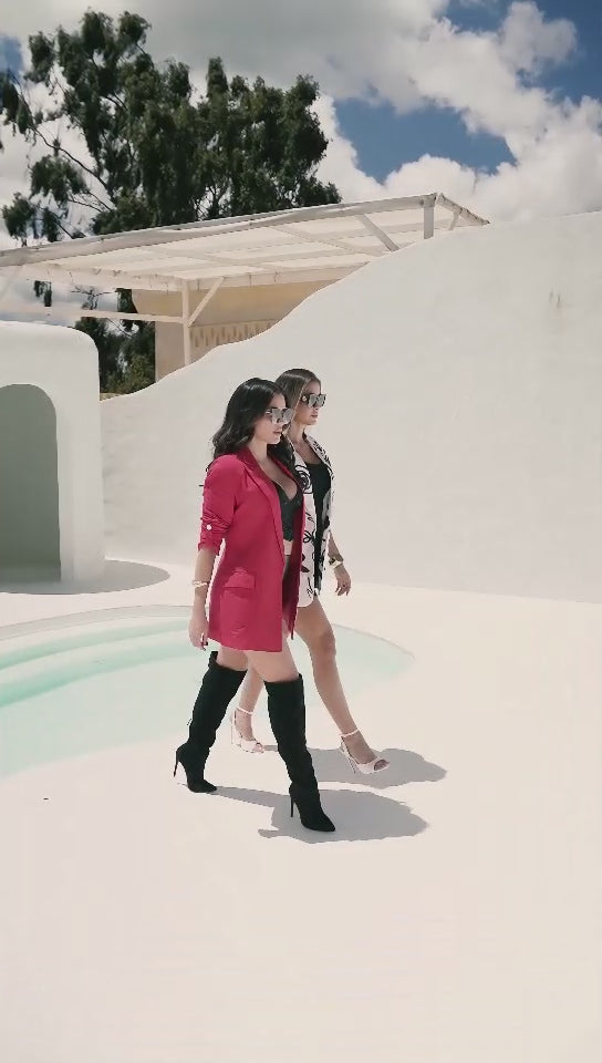 La ropa de mujer glamurosa redefine la elegancia con nuestro blazer de lino rojo a medida, ideal para la mujer segura de sí misma.