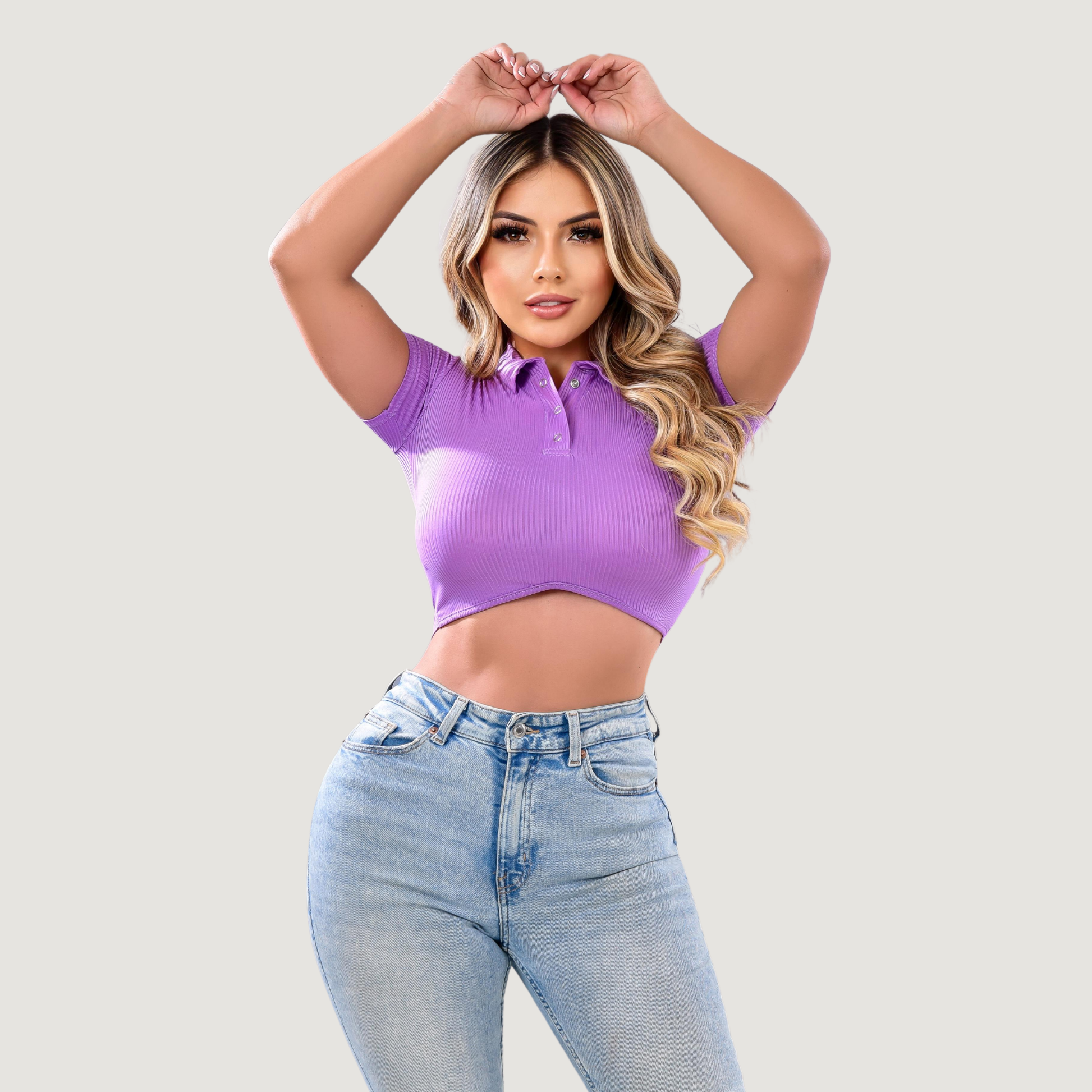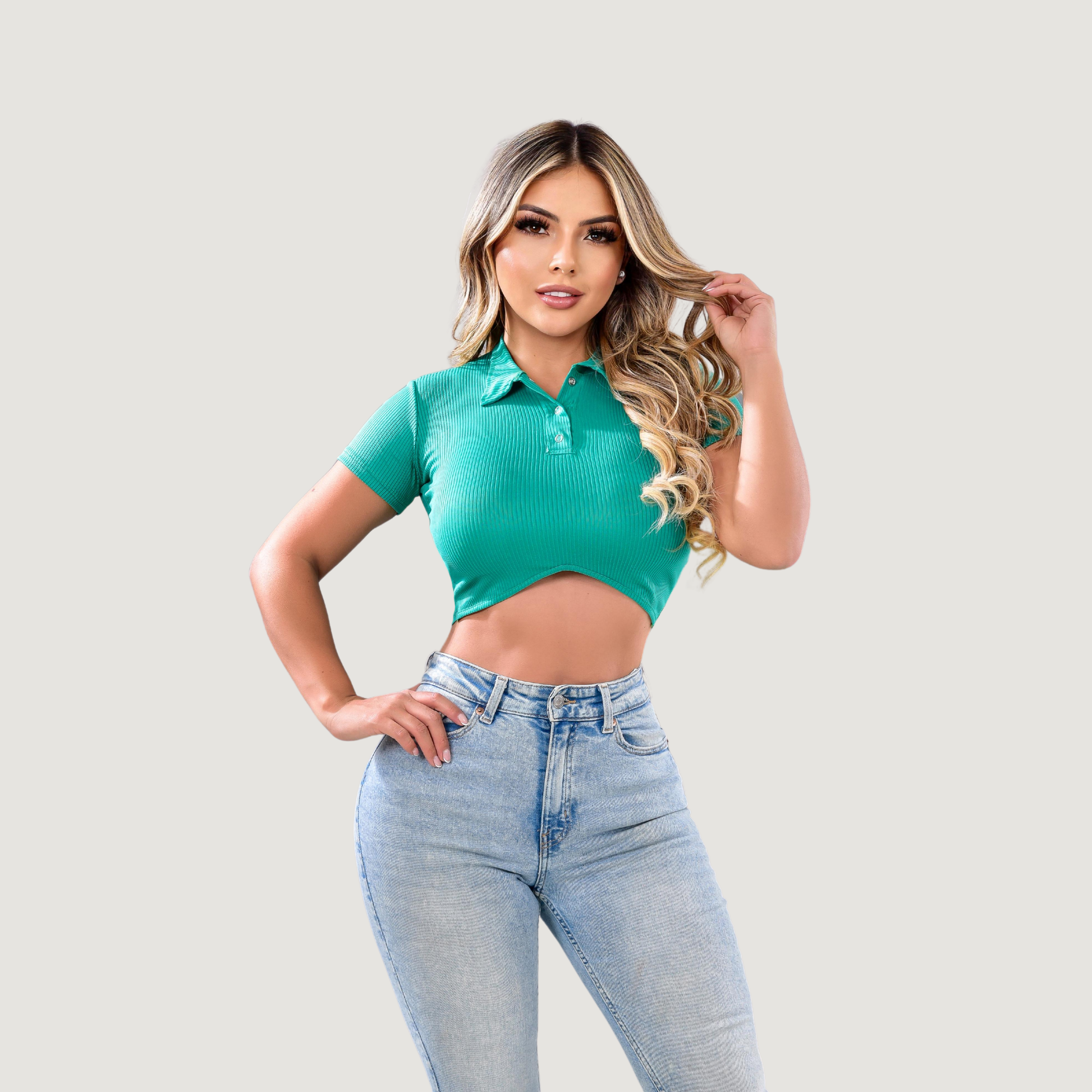Mejora tu vestuario informal con este elegante top tipo polo. Su tejido elástico y cómodo acanalado garantiza un ajuste favorecedor, ideal para usar a diario. ¡Una opción elegante para días relajados y a la moda!