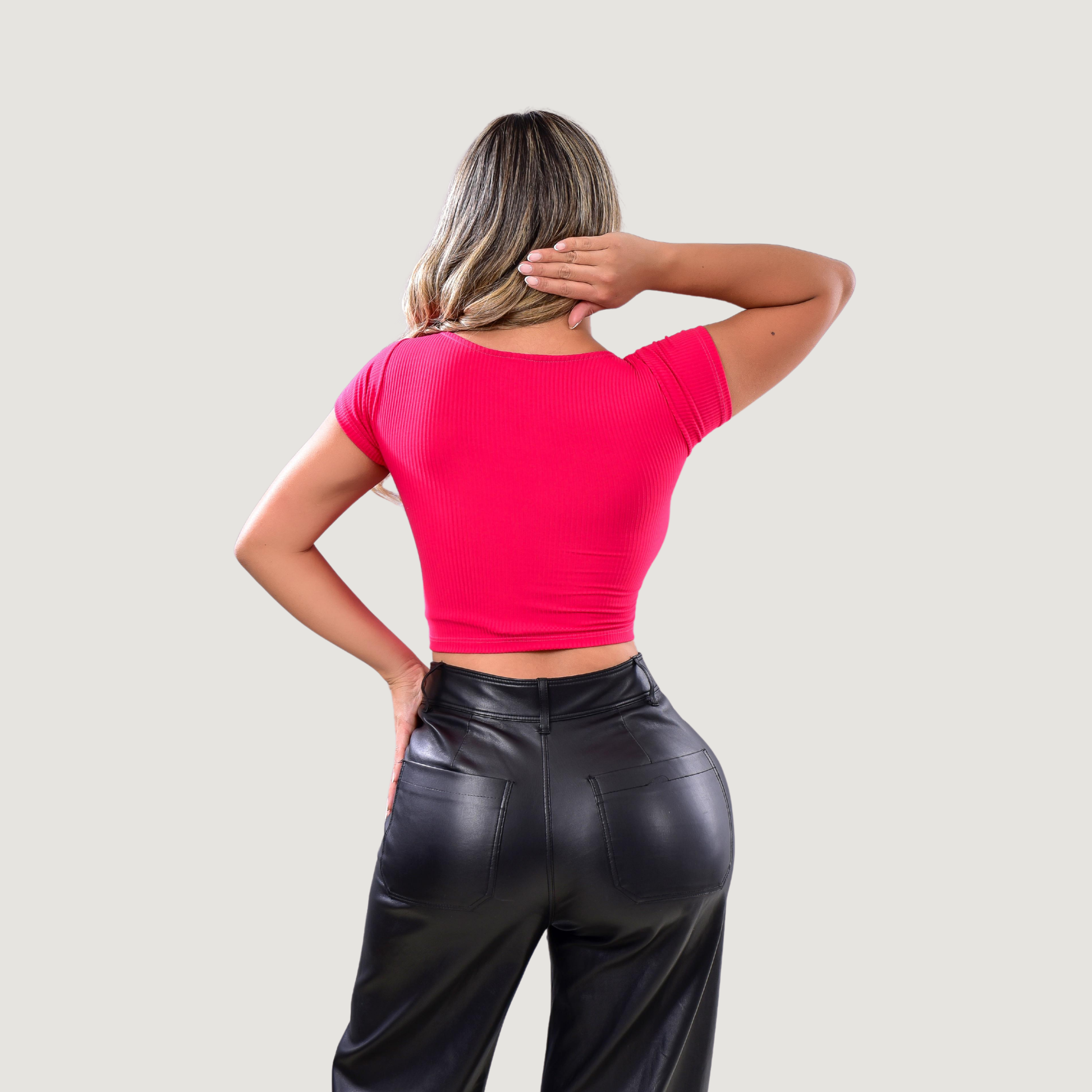 This versatile lace-up crop top is perfect for casual or dressed-up looks.