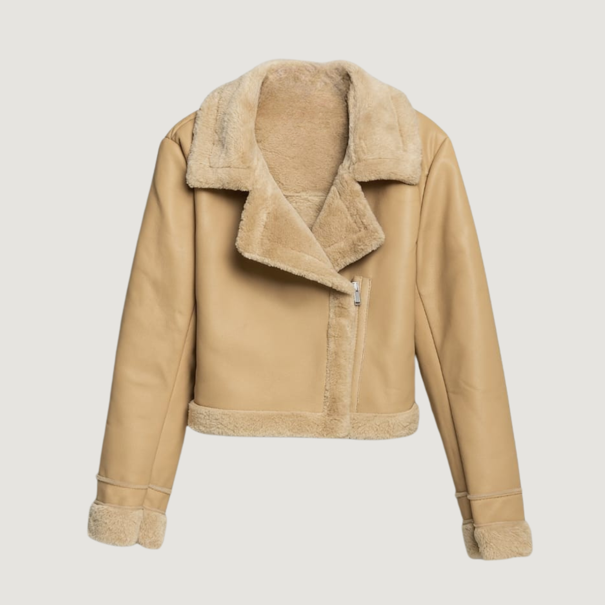 Leather jackets are getting a cozy update! Discover this sleek cropped bomber.