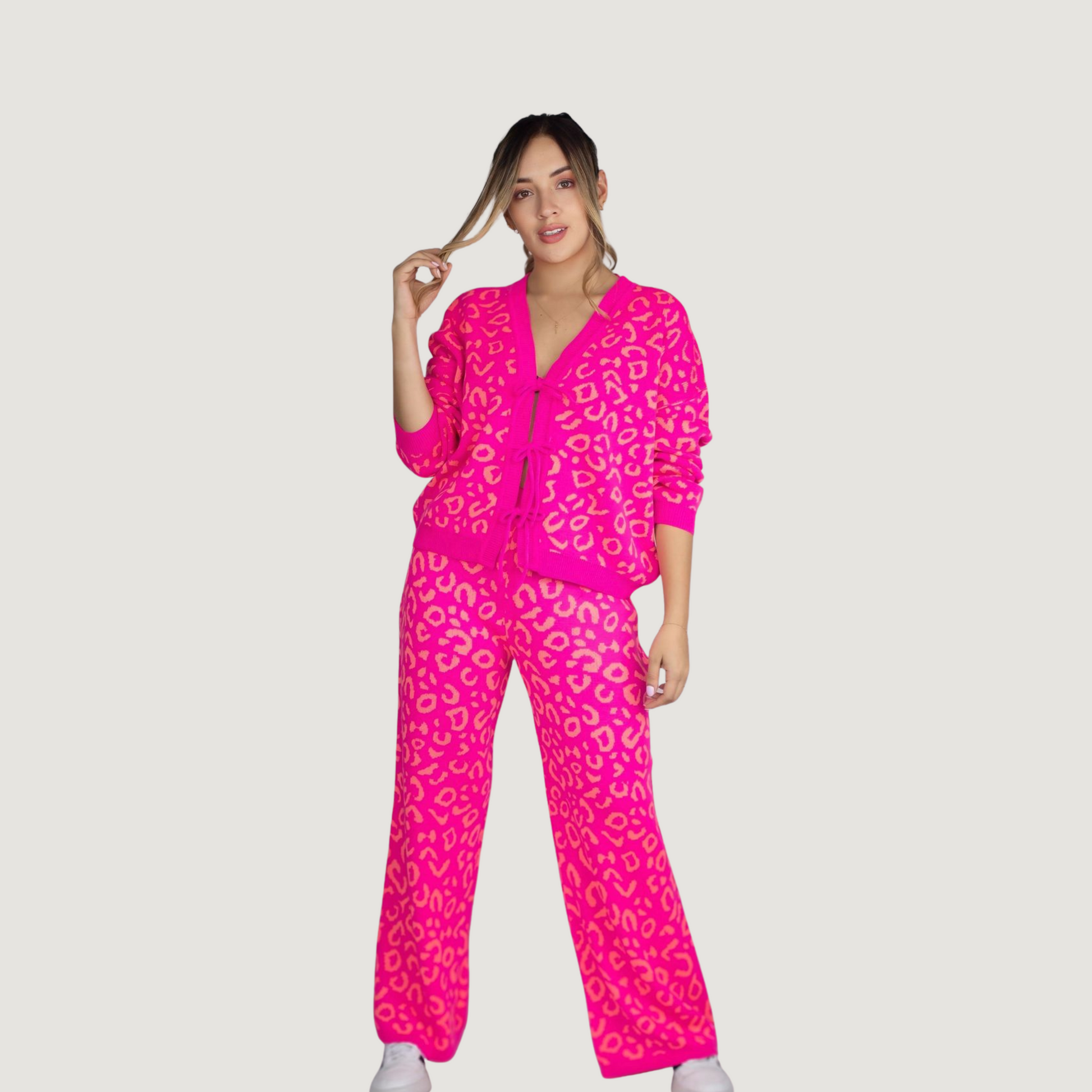 This set blends modern chic with all-day comfort. The cropped cardigan and wide-leg pants offer a relaxed yet elevated fit that makes it versatile for many occasions.